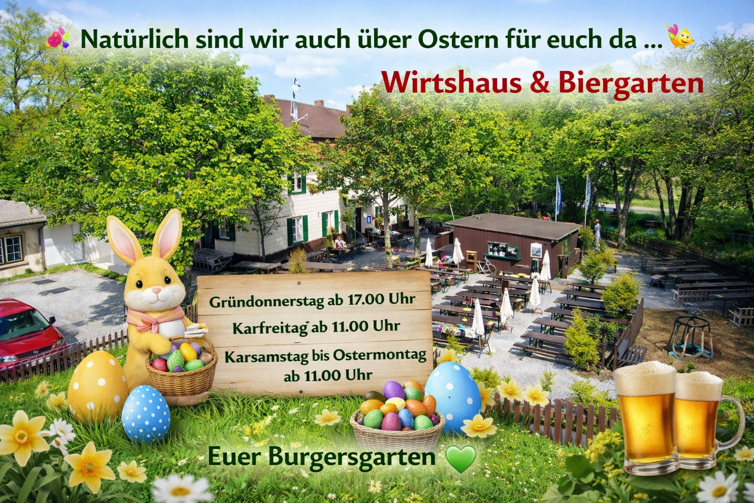 Das Areal Burgersgarten ist ein Gelände von über 6000qm, auf dem Sie einen Biergarten, ein Wirtshaus, diverse Musikveranstaltungen und Erlebnisse finden. Wir sind für Sie da, wenn es um Speis und Trank, Privat- oder Firmenerlebnisse und musikalische Veranstaltungen geht.