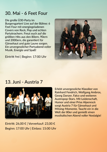13.06.26 – Austria 7 – Vorverkauf 23,00 €, Abendkasse 26,00 €